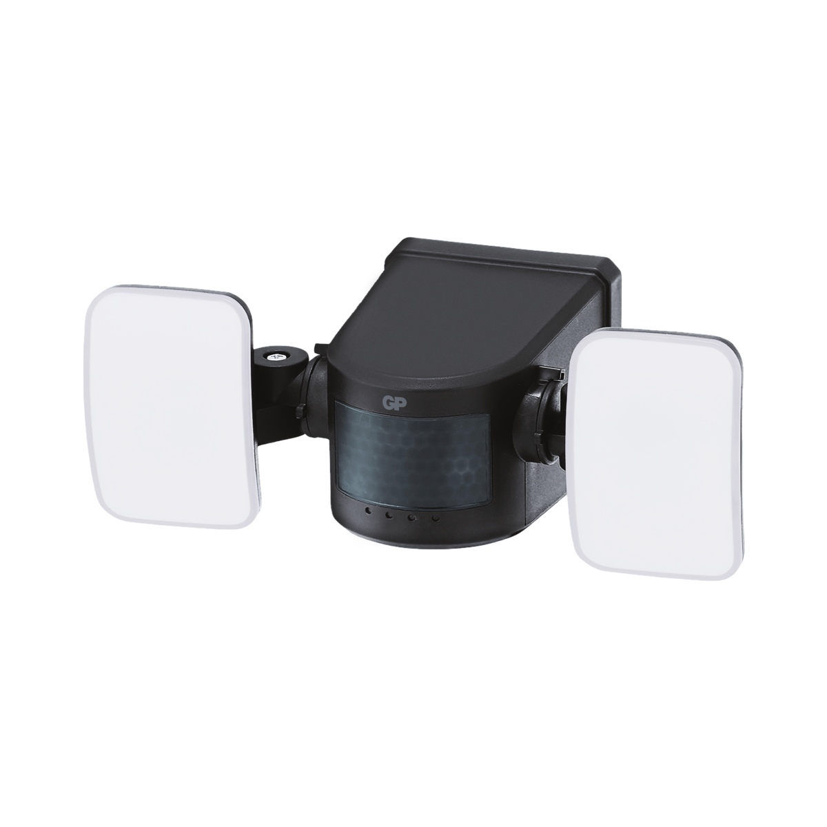 Kraftfuld LED lysspot, sensorlampe som kan justeres både op og ned og fra side til side. GP Safeguard giver dig ekstra tryghed i hjemmet.